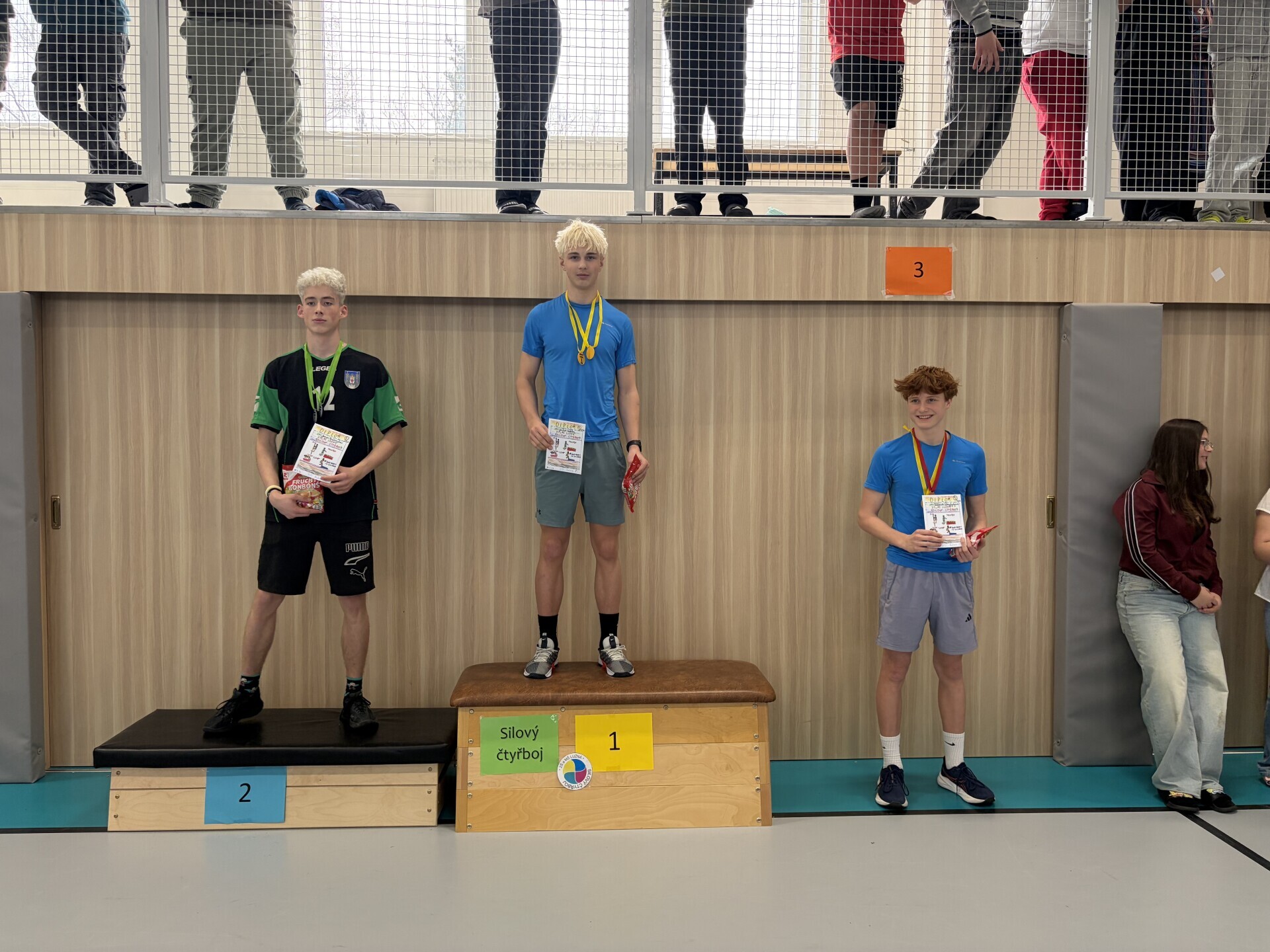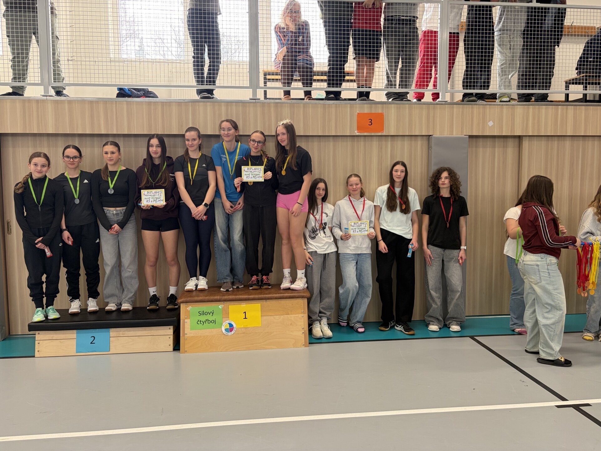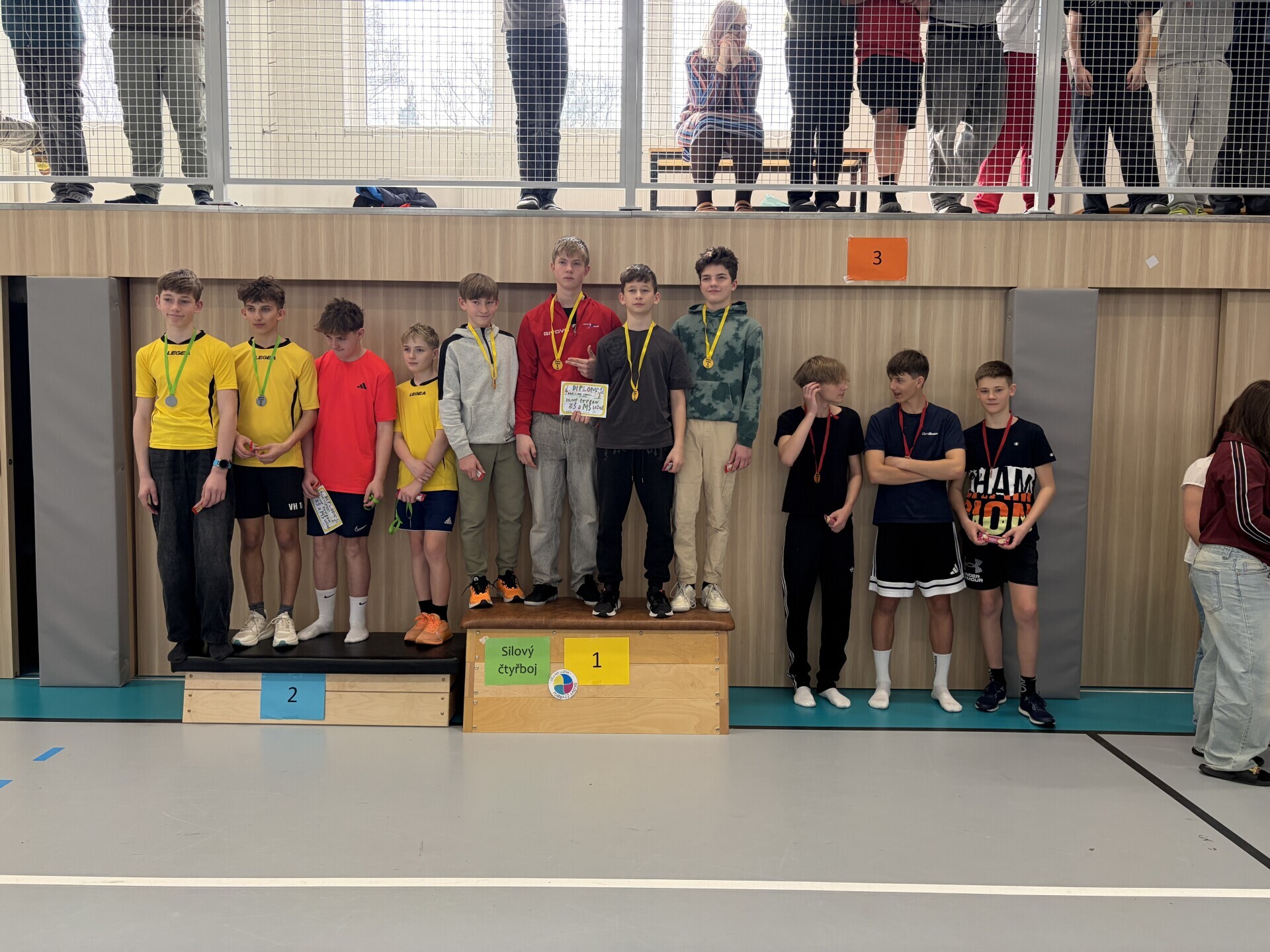 Dne 10. 3. 2026 se uskutečnil v Lužné již 15.ročník silového čtyřboje. Je to soutěž 4-členných družstev a zároveň jednotlivců. Soutěží se ve šplhu na tyči, sed-lehách po dobu 30s, trojskoku a hodu medicinbalem vpřed. Výjimkou jsou starší žáci, kteří mají šplh bez přírazu na laně, sed-lehy po dobu 30s bez opory nohou, trojskok a shyby na hrazdě. Každoročně zde naše škola dosahuje úspěchů. Ani letos tomu nebylo jinak. Starší žáci vybojovali 1.místo, mladší žákyně, starší žákyně a mladší žáci 3.místo. V jednotlivcích získali 1.místo Jiří Cédl, 2.místo Erika Rosenreiterová a 3.místo Viktor Danylyšyn a Josef Dašek. Ani ostatní žáci a žákyně si nevedli špatně. Někteří si zde vylepšili svoje osobní rekordy. Všem patří velká pochvala za předvedené výkony.