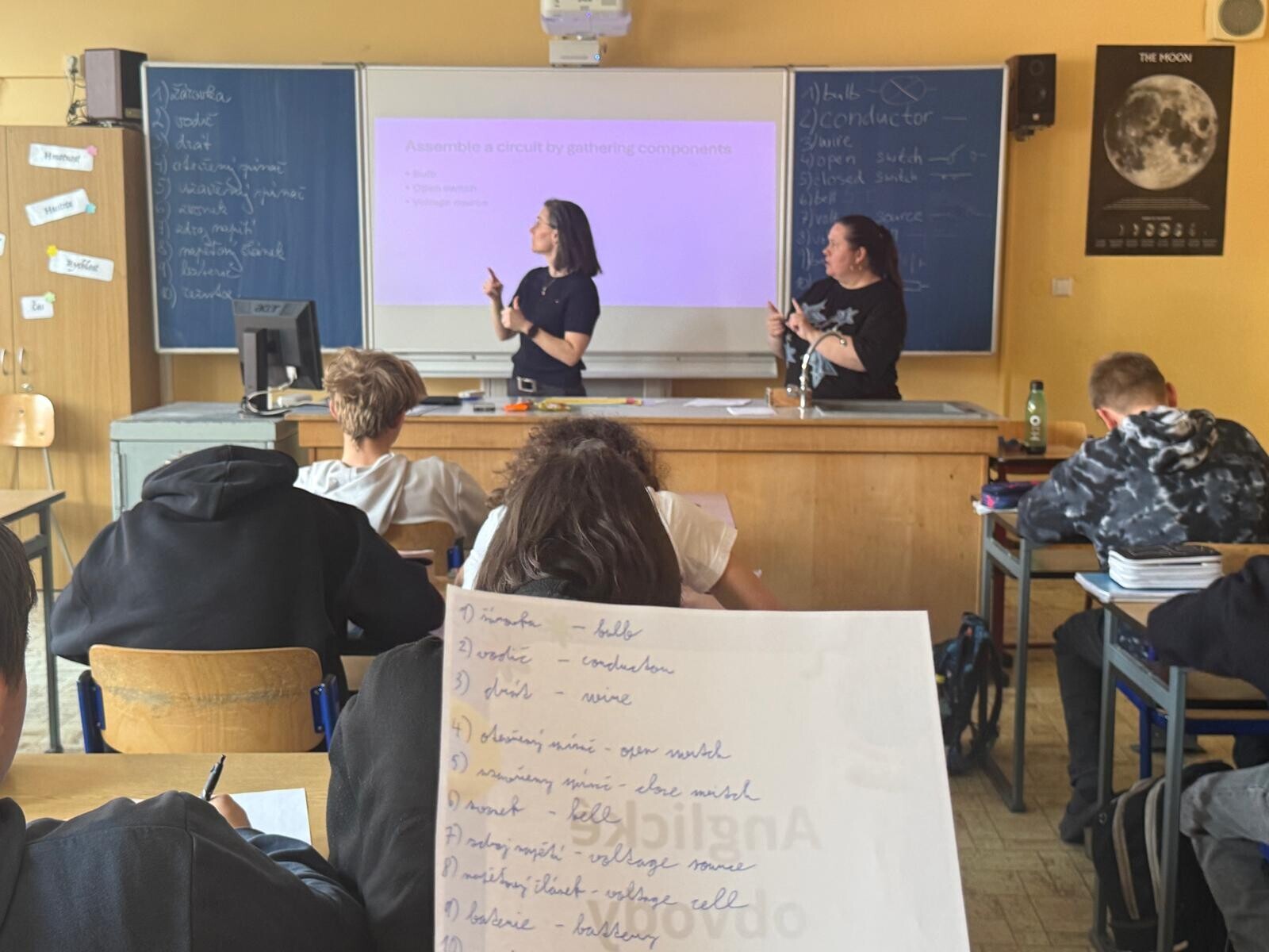 Tématem této společné výuky byly anglické obvody, které žáci poznávali z různých úhlů pohledu. Hodiny vedly paní učitelka Čermáková (anglický jazyk) a paní učitelka Ringlerová (fyzika). Výuka byla vedena v anglickém jazyce, což žákům umožnilo přirozeně rozvíjet své jazykové dovednosti přímo v praxi.