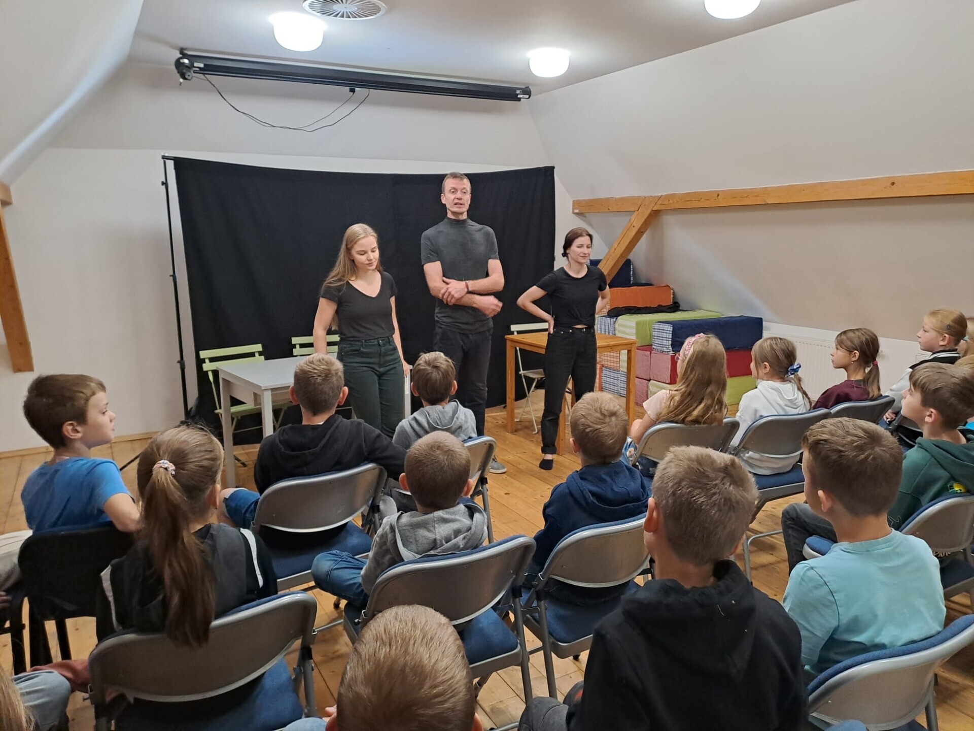 Ve středu 17.9. bylo pro děti připraveno představení příběhu "Připojená", které řešilo současné problémy spojené s digitálním světem. Děti se aktivně do příběhu zapojovaly a dotvářely ho. Tento den ještě mnohé čekala beseda se včelařem, která dětem přiblížila život včel a práci včelaře.